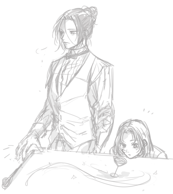 3 22 #愛憎版深夜の真剣お絵描き60分一本勝負 お題『カクテル』 「シャイロック、もしかしてすごく機嫌が良い?」 「要りませんでしたか?」 「いるー!」 22/08/07 00:43