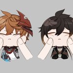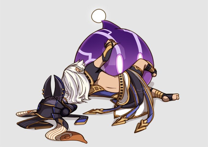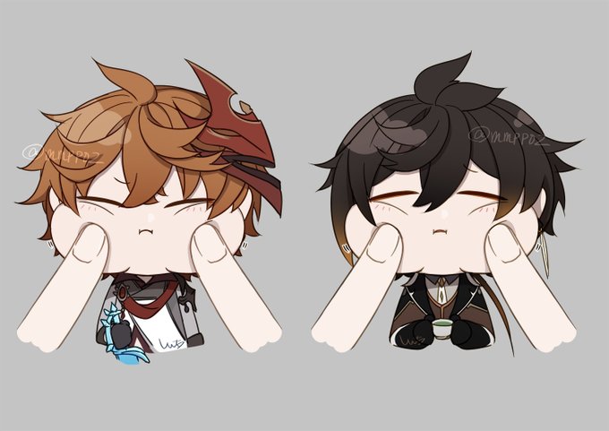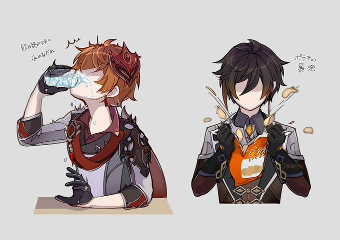お題ありがとうございました! トーマ描くなら若も描きたいなと思って勝手に書いてしまいました…不要でしたら両目つぶってください🙇 > いつも素敵なイラストをありがとうございます😭 だらしないシリーズの炎元素スライムでトーマを頂きたいです😭 #odaibako_mmpp02 odaibako.net/detail/request…