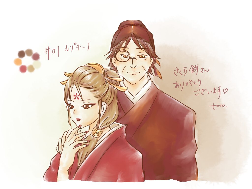 #リプをもらった番号の色を使って絵を描く #薬屋FA カプチーノ羅漢鳳仙夫妻です☕️ さくら餅さんありがとうございました😊