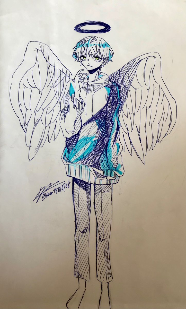 前学校で創った子 青い天使 #イラスト #創作