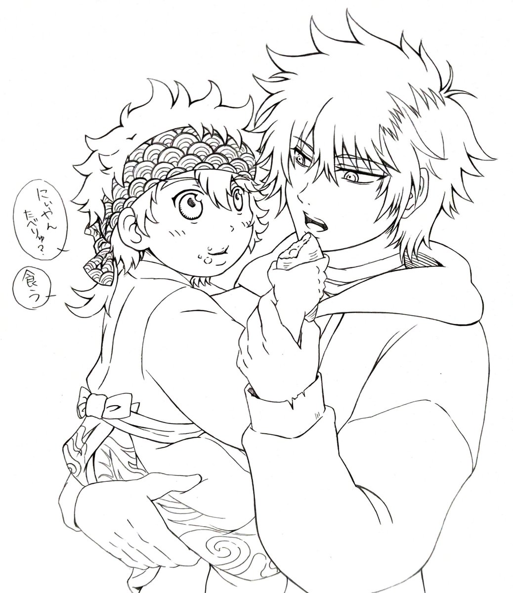 幼児むつくん(1番目)抱っこする肥前くん(2番目)描かせていただきました!線画にて失礼します🙇 お題いただきましたあゆむさん、水乃さんありがとうございました!☺️☺️ twitter.com/mmtr666666/sta…