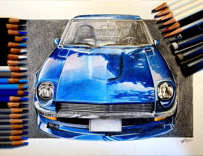 5 32 完成しました! レベルアップした気がする✨ 色鉛筆とミリペンで頑張りました😆 #絵描きさんと繋がりたい #s30z #フェアレディz 23/01/31 23:03
