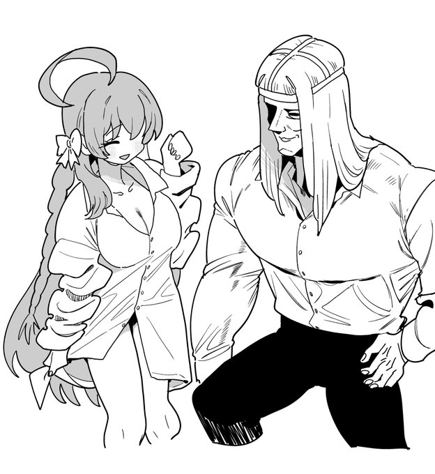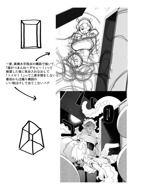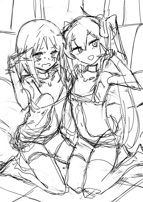 skeb依頼「人物二人、正面構図でよろ!」 1枚目ぼく「正面了解」 2枚目ぼく「こういう…依頼の意向をちょっと無視するくらいの絵が…いちばん美味しい…」