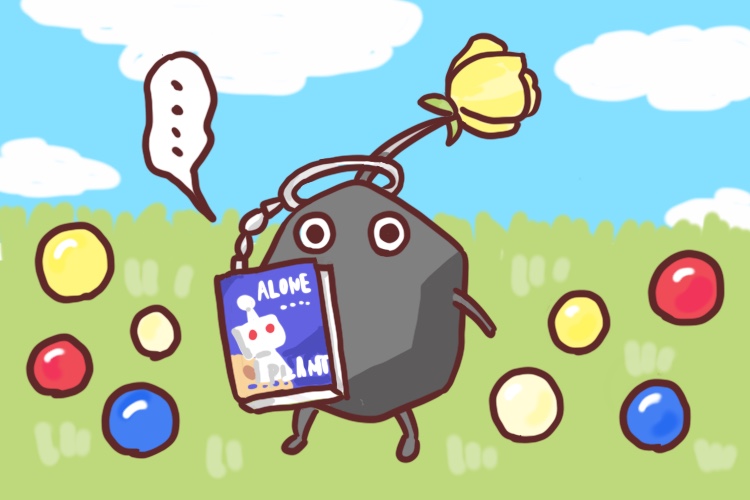 久しぶりの大きな苗から本のピクミンが!可愛すぎてエキスを投げまくるも本人(?)はマイペースにうろうろしていた。#ピクミンブルーム #イラスト