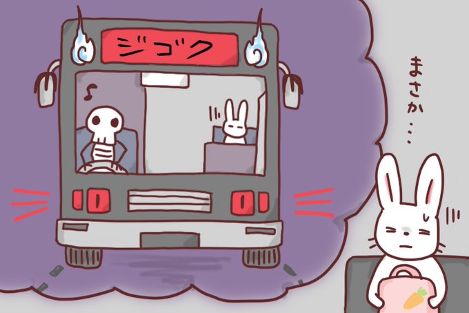 夜遅くのバスはいつもの道も真っ暗で少し不安になります。 #イラスト #ゆるい絵 #ゆるいイラスト