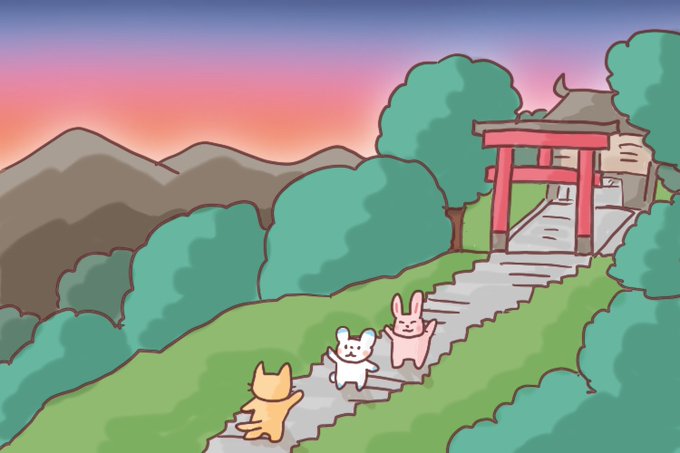 27 388 夕暮れの神社。 朝晩少し涼しくなって嬉しい😊 #イラスト #ゆるい絵 #ゆるいイラスト 22/08/25 12:00