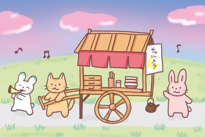 日が沈んだら開店だよ。食べに来てね😊 #イラスト #ゆるい絵 #ゆるいイラスト #チャルメラの日
