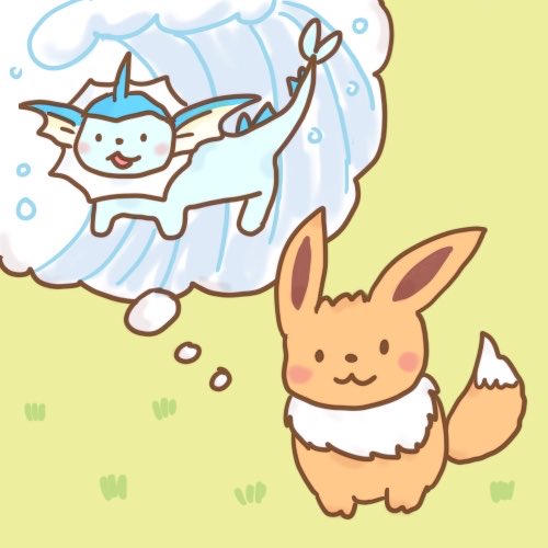 今日はイーブイの日だそうです! いつかカッコいいシャワーズになりたいな。 #イラスト #ゆるい絵 #ゆるいイラスト #イーブイの日
