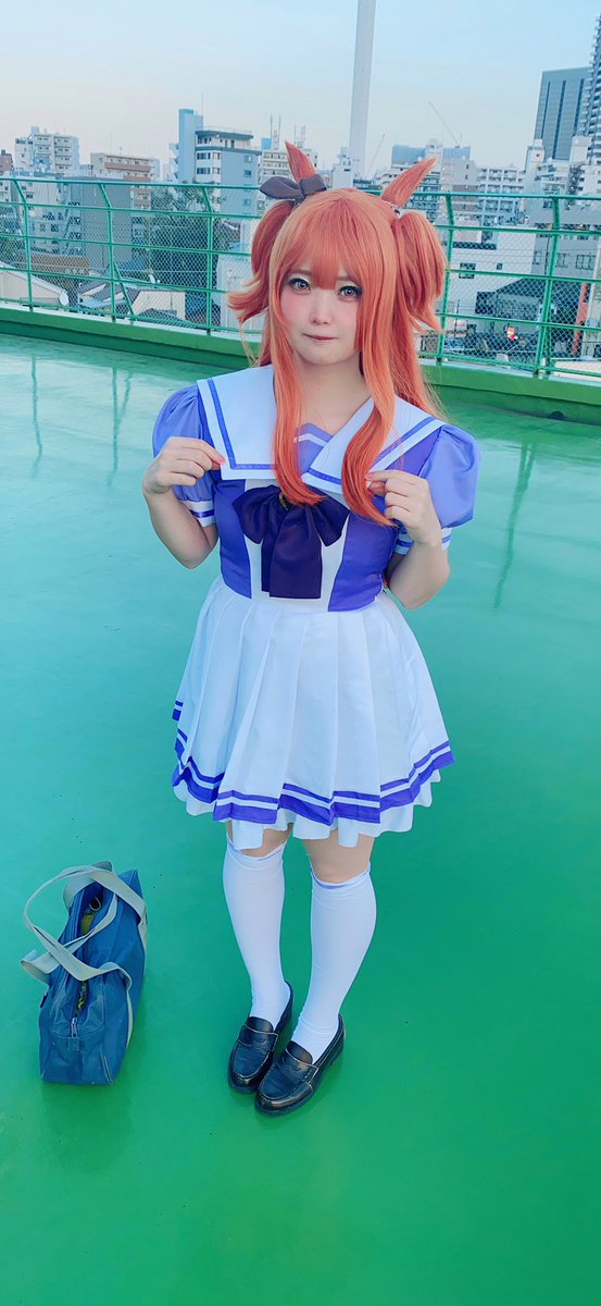5月に買ってあった衣装がやっと出せた〜〜👗🌸半袖制服普通に風強くてさむかった🐎🐎今日の撮影はばぶちゃんコンビ😼😼ありがとね🐺