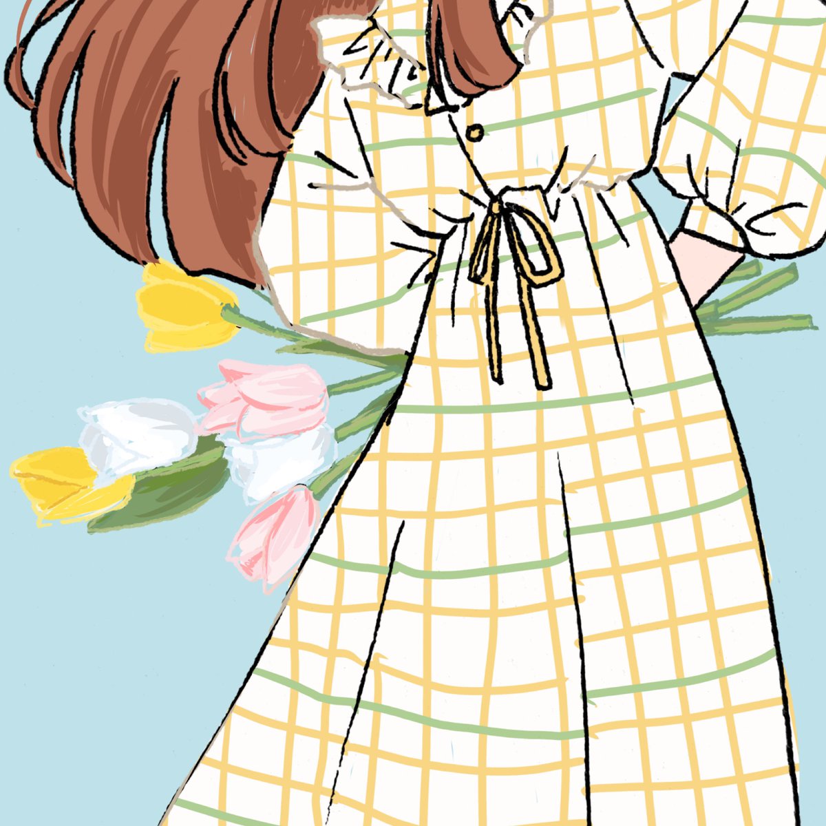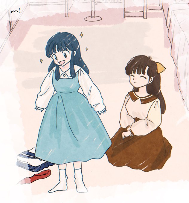 そういえば前に描いてたやつ! #あかねの特別なおしゃれ だったかな?あれ?合ってる…?(不安) お洒落に目覚めはじめた頃の中学生あかねちゃん。かすみお姉ちゃんの制服を着せてもらって高校生への憧れからキラキラしている様子☺️✨