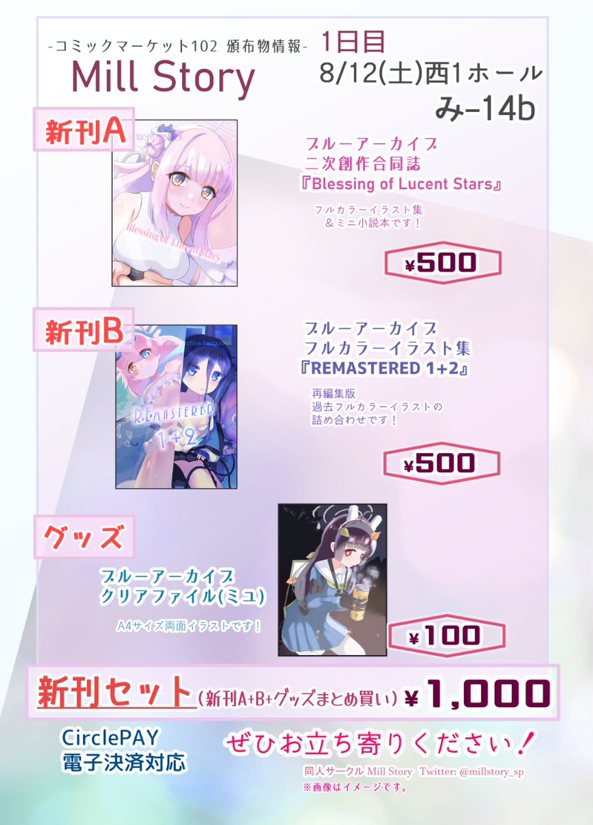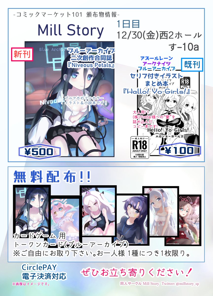 #C101 コミケ当選しました! 12/30ですブルアカフルカラー本です! よろしくお願いします! あなたのサークル「Mill Story」は、コミックマーケット101で「金曜日西地区 "す " 10a」に配置されました!コミケWebカタログにてスペース配置場所公開中です! webcatalog.circle.ms/Circle/Map/168… #C101WebCatalog