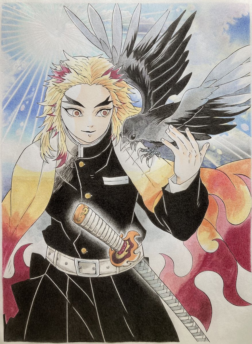 昏い夜 一条に光り 導く あなたは明け星 お誕生日おめでとう💝💝💝💝💝 この世に生まれてきてくれて本当にありがとう✨✨✨✨✨ 今年もお誕生日🖼が描けてとっても幸せです❤️🔥❤️🔥❤️🔥❤️🔥❤️🔥 #煉獄杏寿郎誕生祭2023 #煉獄杏寿郎生誕祭2023 色鉛筆 目視模i写
