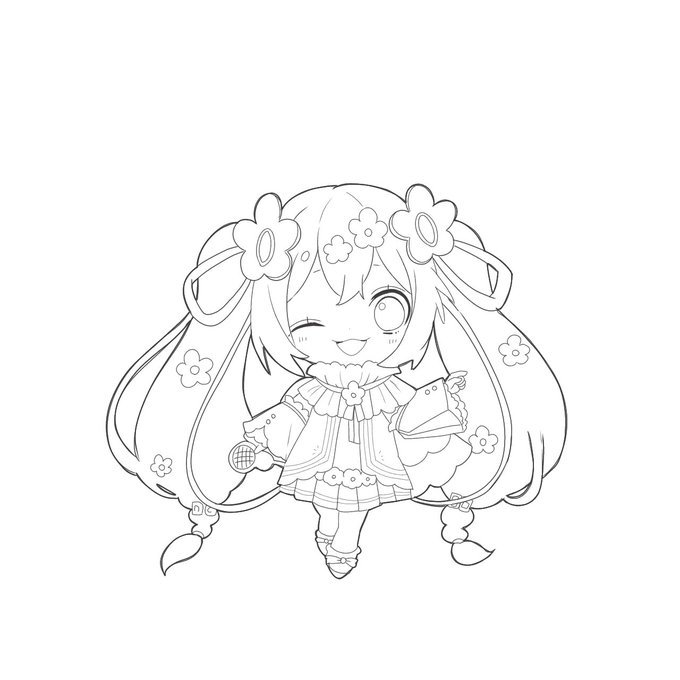 マジカル🌟ミクの線画です!! 塗ってくださったら嬉しいです ॑⸜(* ॑꒳ ॑* )⸝⋆* #線画を晒すと誰かが色を塗ってくれるかもしれない #絵描きさんと繋がりたい #イラスト女の子 #イラスト