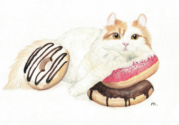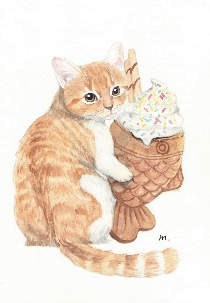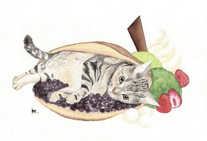 1 14 新作のスイーツ×猫の1作品目❤️ #うちの子グッズ #うちの子イラスト #猫グッズ #イラスト好きな人と繋がりたい #猫イラスト #水彩画 #アナログイラスト 22/07/09 00:07