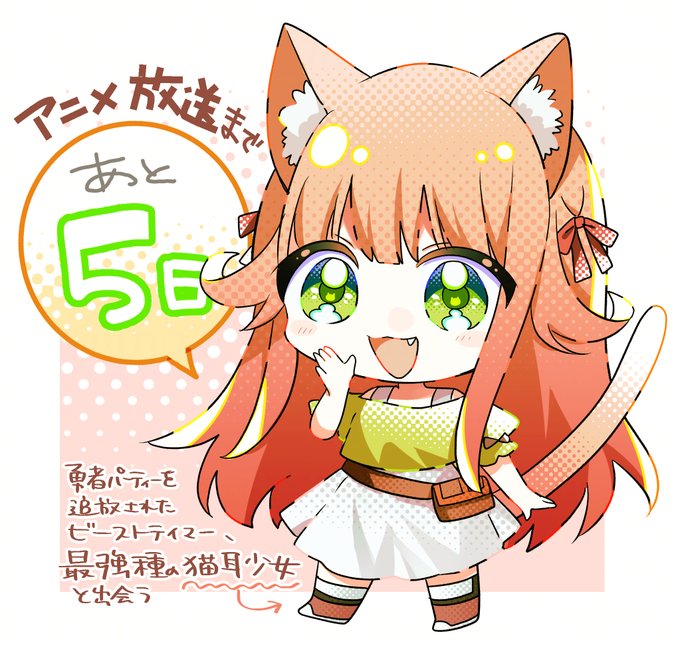 #マンガUP ! にて連載中の『勇者パーティーを追放されたビーストテイマー、最強種の猫耳少女と出会』アニメ放送カウントダウンイラストを担当しました! あと5日だ―――!!!!