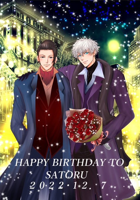 お疲れ様です! 5枚目 最後のお誕生日絵🎂❤️ 大人はしっぽり海外で お祝いよね〜(⸝⸝ ´艸`⸝⸝)💕✨ ということで 五夏2人で雪降る晩に 豪華ディナー かな?😆✨ 寒いからほっぺ赤い🌹 #五条悟誕生祭2022 #五条悟生誕祭2022 #呪術廻戦ファンアート