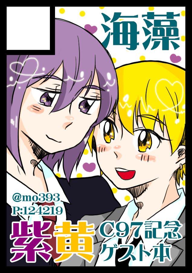改めまして頂いたスペースにてC97(紫黄背番号)を記念して豪華ゲストをお呼びした紫黄本を頒布予定です。詳細は追って公開予定です!どうぞよろしくお願い致します! 「海藻」は、コミックマーケット97で「土曜日西地区 "け " 03b」に配置されました! webcatalog.circle.ms/Perma/Circle/1… #C97WebCatalog