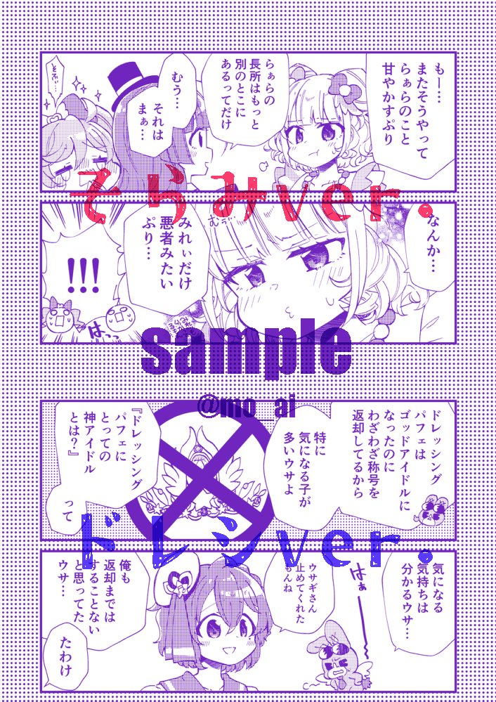 【C102 新刊①/秋雨ゼンセン】 『なんてったって神アイドル!』 そらみドレシ。そらみ、ドレシ、それぞれが神アイドルについて考えるお話。表紙ギラギラしてます。 しぶに少し多いサンプル↓ pixiv.net/artworks/11046…