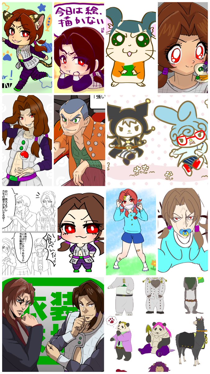 #推しキャラポケトレ化 マジオは「厨ポケ出してくるタイプ」か「猫ポケオンリー」かすごく悩んだ結果猫ポケオンリーにした。 頭いいキャラなのでサポート得意そうだなと思いつつ、手持ちがそんなサポ向きじゃないな🤔 エネコやチョロネコは進化させて貰えない可愛がり要員 トレス有 #jjba #jjbafanart