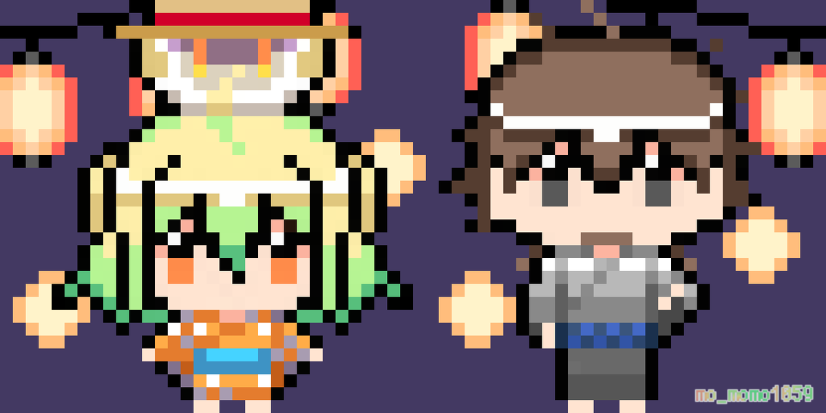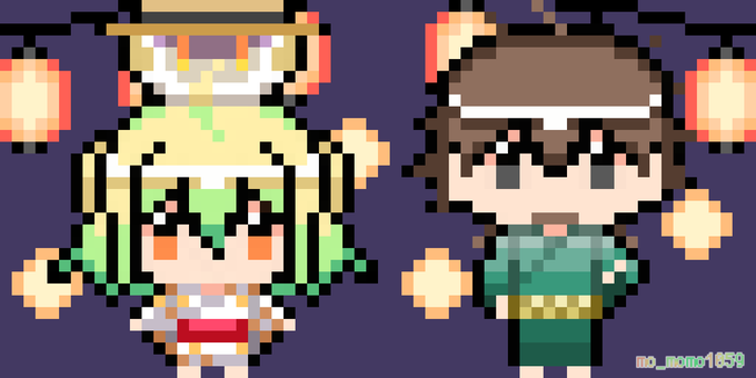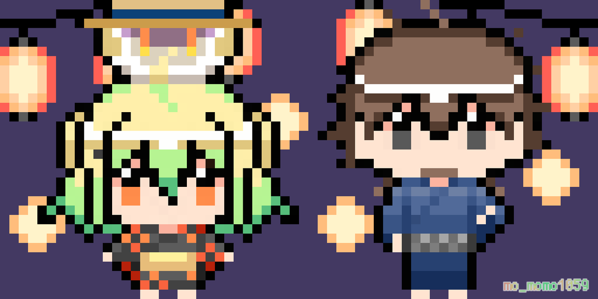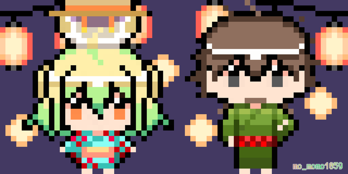 12 37 本日のアポロン様とパリスちゃんとヘクトール兄さん 浴衣着てお祭り満喫してほしい~! #FGO #FateGO #ドット絵 #pixelart 23/06/25 14:07