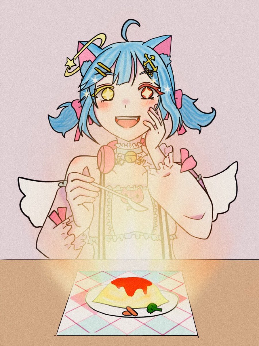 めっちゃ輝いてるオムライスと今すぐ食べ始めそうなセウちゃんw #せうくんへのおえかき