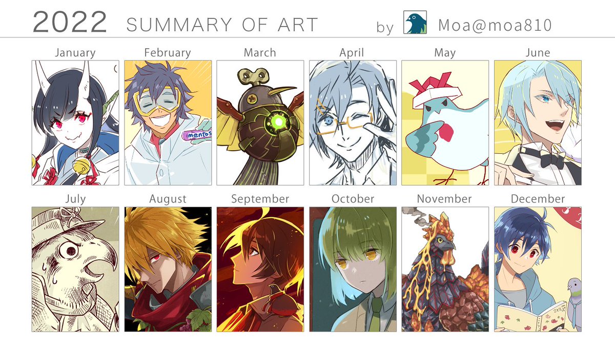 イラストまとめ2022。今年はTwitterを始めて以来最も投稿数の少ない年になってしまいました。無念。インターネットお絵描きバードの名折れ過ぎるので、来年はもうちょっと表に出せる絵も描きたいものです。 #ArtSummary2022