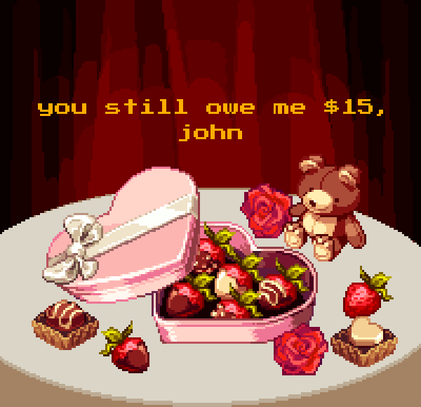sorry im not,, v good at this romance thing mbe u can write a nicer message,, try it out! the assets are free to download and use :) moawling.itch.io/pixel-valentin…