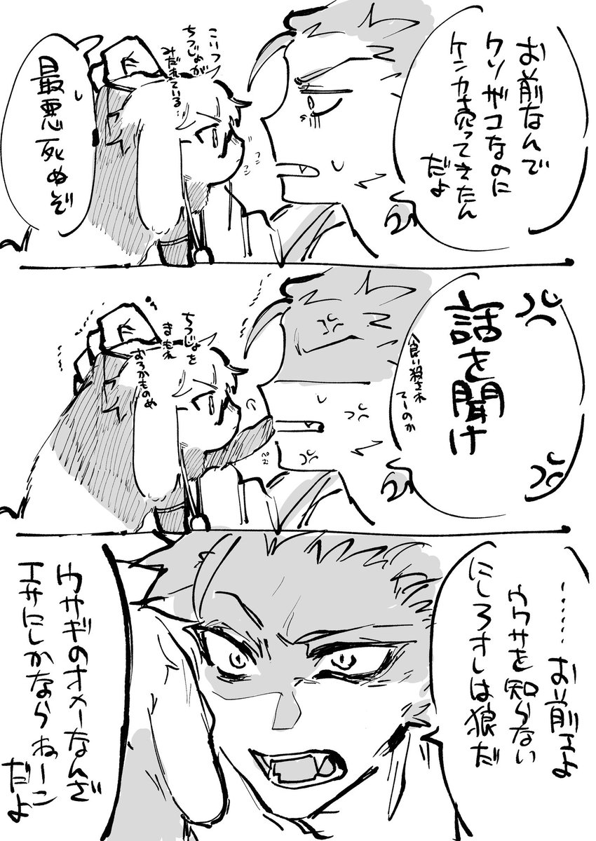 うさぎ🤍とウルフ🩷(獣化注意⚠️) 落書き漫画です