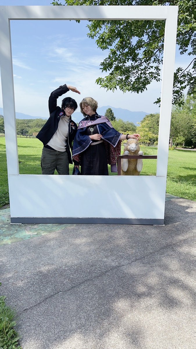 速報というかオフショ🥰楽しかったので見て見てします ①試し撮りでなぜかとても斜めな私 ②羊のおさんぽしたけどずっと草食べてた ③触ってみたらめちゃくちゃふわふわでワァ…‼️てなってる私(素) ④おさんぽ終わりの羊を連れていこうとするも弄ばれている私(普通にわちゃってる音声入り) twitter.com/i/web/status/1…