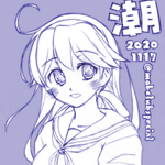 潮ちゃん。リハビリも兼ねておっきめの描こうと思ったら案の定線画も終わらなかった‥‥‥なんでみんな色まで入るの? #艦これ版深夜の真剣お絵描き60分一本勝負 #艦これ版真剣お絵描き60分一本勝負_20201117