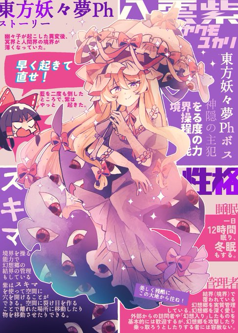 東方のEx女子を一枚でざっくりおさらいしたい! 東方妖々夢Phボス 八雲紫🎀 #東方Project #東方イラスト