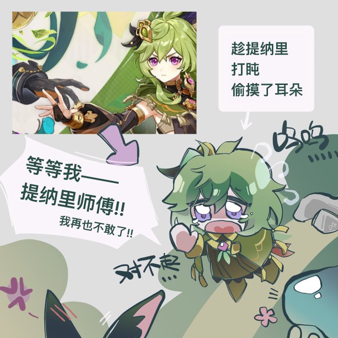 偷摸师傅耳朵的柯莱 误食毒蘑菇的提纳里 🏷#GenshinImapct #Tighnari #collei #cyno #genshinimpactfanart #manga little #cynonari