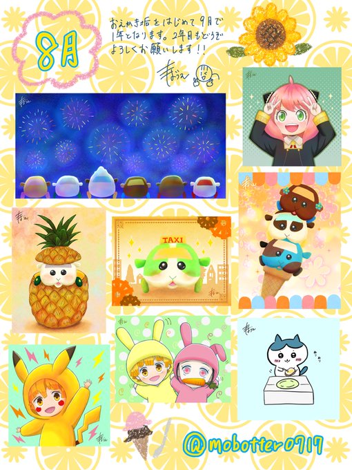 #今月描いた絵を晒そう #今月描いた絵を晒す 🍧8月イラストまとめ🎐 夏休みなのでたくさん描けたし、今まで描いたことのないキャラにも挑戦できてよかった!! 9月はついったを始めて1周年を迎えます✨いつもいいね、RT、温かいリプをありがとうございます!2年目もどうぞよろしくお願いします🥰