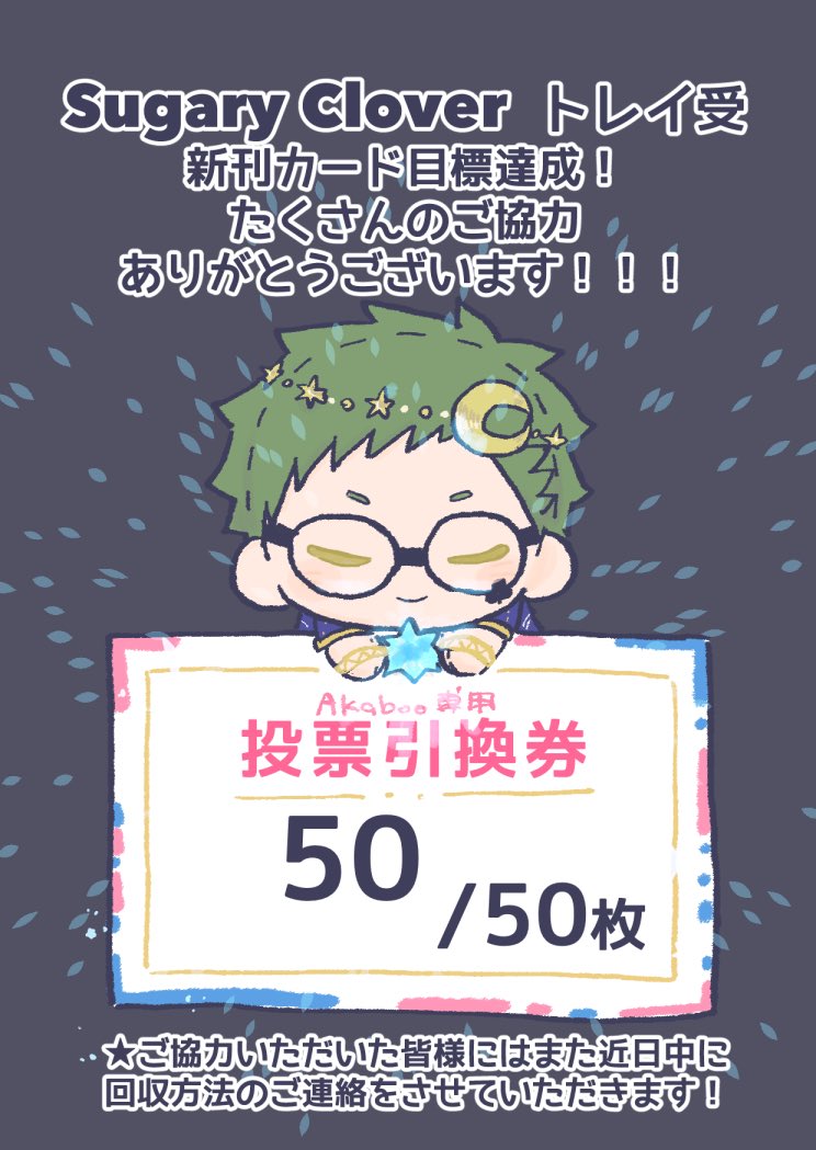 Sugary Clover(♣️受)オンリー開催用新刊カードが 目標の50枚達成いたしました🥳 ありがとうございます!!! 新刊カードのご協力いただいた皆様には近日中にご連絡させていただきます! RTやお声かけ本当にありがとうございました!!! twitter.com/mocamohu/statu…