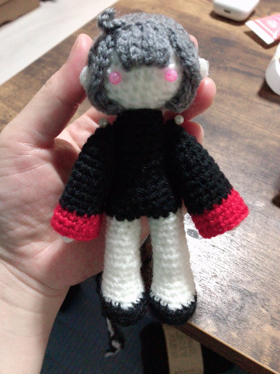 11 44 鬼の子〜出来た〜! あと少しのところでなかなか進められなかったけど、完成させられてよかった😈 ポニテのピョッコリ具合とかツノとか、とんがり耳とか好きな物詰め込めた👍 #あみぐるみ #ヒトガタ #mocch #かぎ針編み 19/11/22 15:12