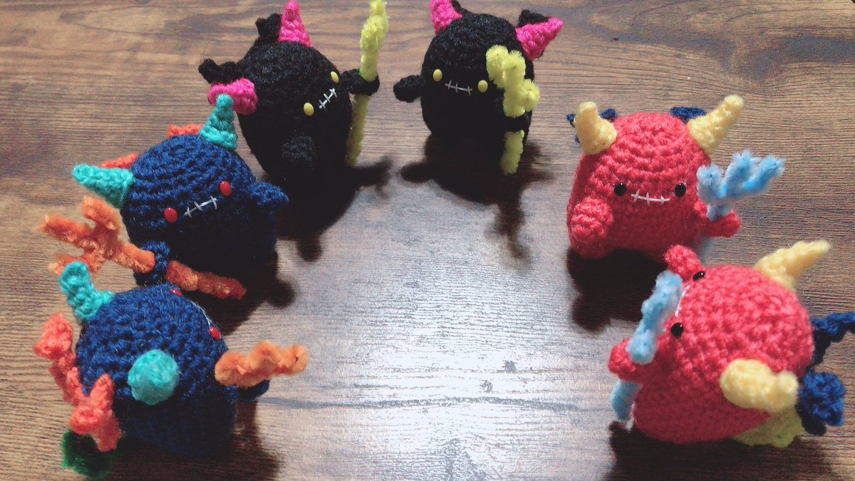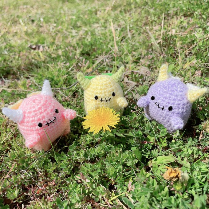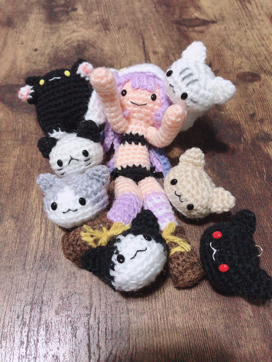 #あみぐるみの日 今年はあんまり編めてませんが、人外なヒトガタだったり、ころころしたものを編むのが好きです😆✨✨ #あみぐるみ #mocch!