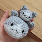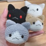 6 18 #おニャンじゅう さん、小さい子も編んだよ〜🐱 どっちももふもふもにもにしててとても良き〜✨✨ #あみぐるみ #mocch! #あみぐるみが編みたくなる糸 22/06/08 20:23