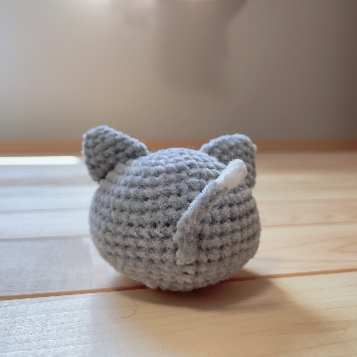#あみぐるみが編みたくなる糸 で、お試しおニャンじゅうさん。 もにもににもふもふ感が加わってぬいぐるみ感ある😆