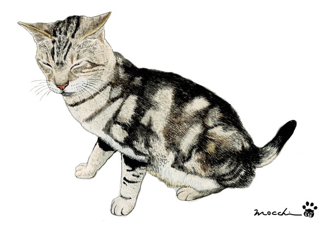 翁顔ニャンコ(再掲) #猫 #cat #イラスト #水彩画