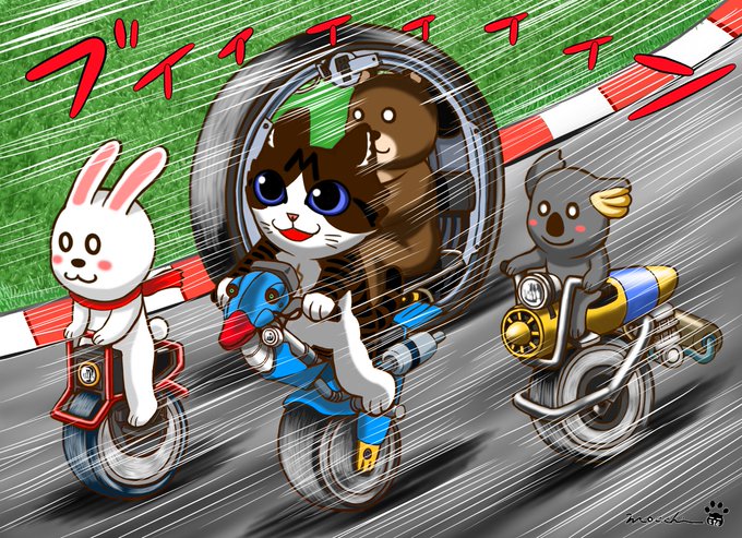 皆で一輪車レースする #猫 #cat #イラスト #ゆるいイラスト #猫イラスト #猫のいる暮らし