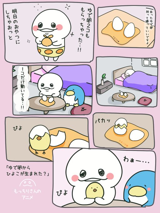 4 126 仕事終わりに余ったゆで卵をもらったもっちりさん🐣 #4コママンガ #ゆるいイラスト #ひよこ #漫画が読めるハッシュタグ 22/09/12 16:45