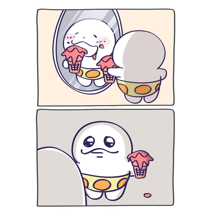 鏡の中のもっちりさん🍦 #ゆるいイラスト #illustration #漫画が読めるハッシュタグ