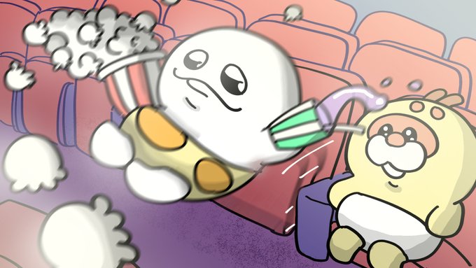 映画館に来たもっちりさんとたぬさん #イラスト #illustrationart