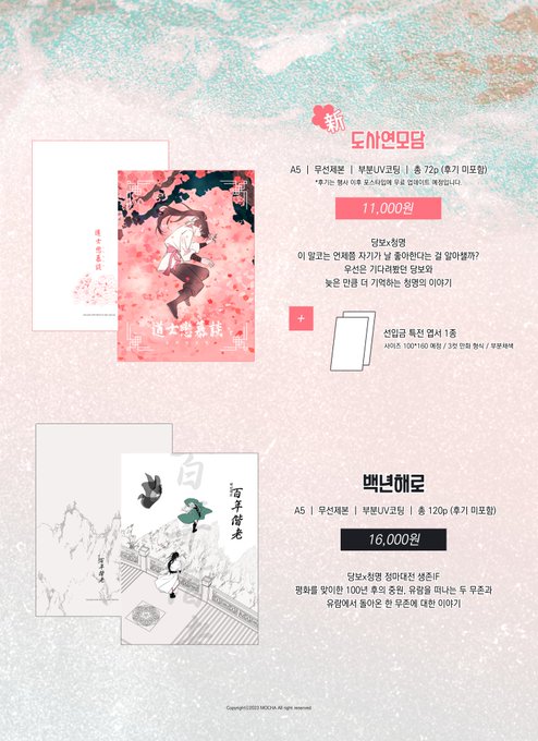 [RT💚] 7디페 발간 예정 당청 CP 회지 신간 <도사연모담>, 구간 <백년해로> 의 선입금을 받습니다. ✨기간: 7/6~7/10 ✨도사연모담 샘플: posty.pe/8zrnla ✨선입금폼: witchform.com/deposit_form/4… 폼에 적힌 공지를 꼭 숙지하신 후 구매 부탁드립니다. 감사합니다! (이하 이미지는 신간 샘플)