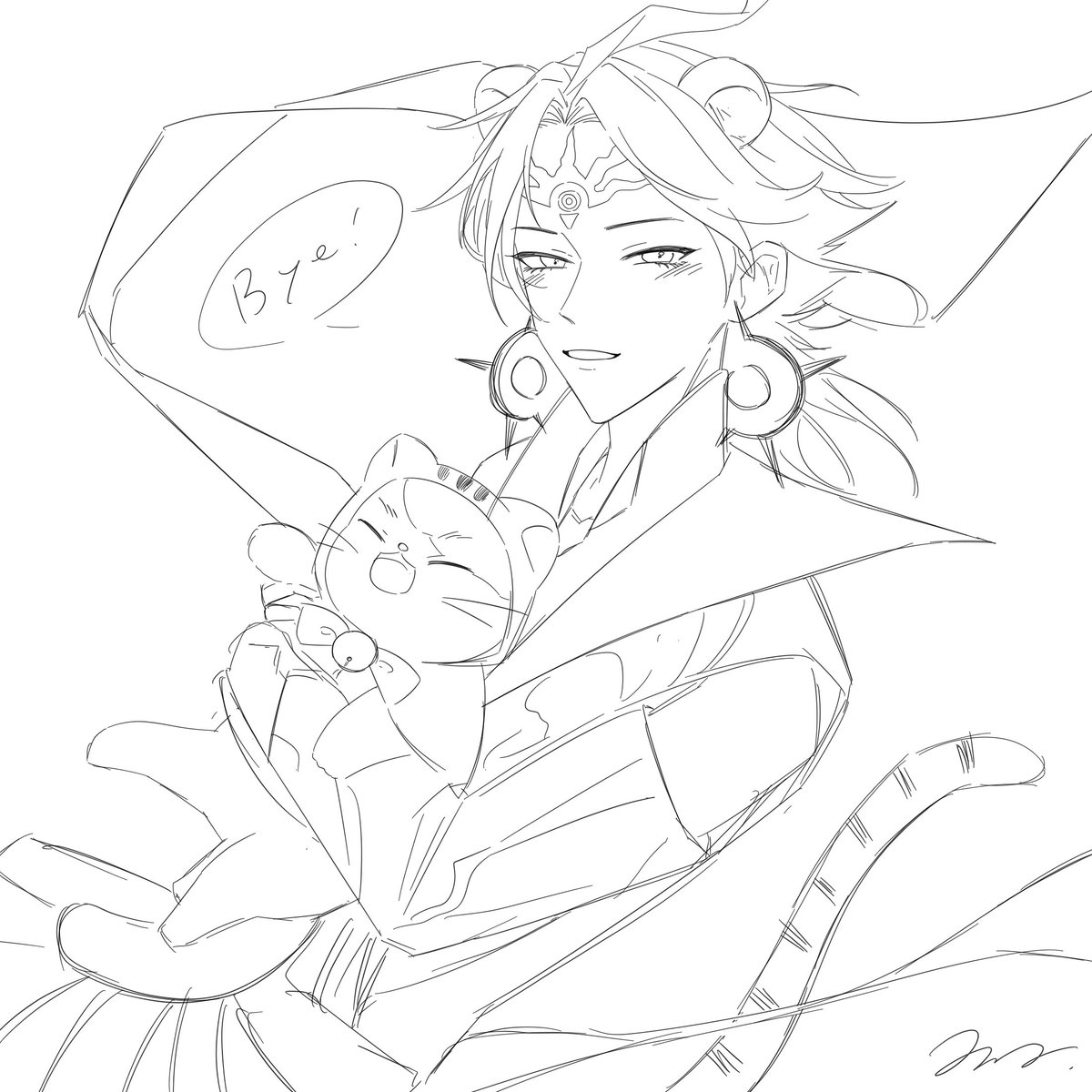須様で描き納め! 間に合わないので線画で失礼🐯⚡️