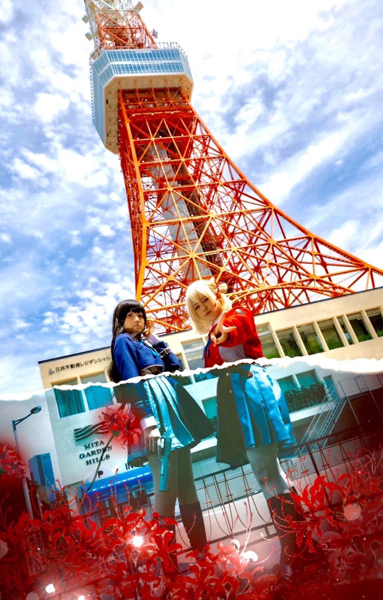 【cosplay】 リコリス * リコイル 錦木 千束 : ここなちゃん(@kokonaaa_ ) 井ノ上 たきな : おもち photo:たけだりあさん(@takedahlia_dj ) (2枚目写真加工 : ここなちゃん) #COSSAN東京タワー