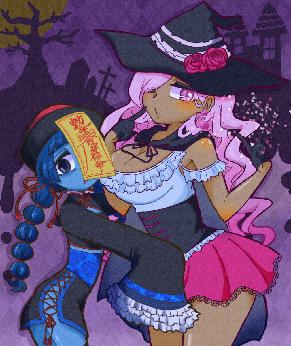 #ハロウィンイラスト展示会2022 #オリキャラハロウィンパレード キョンシーちゃんと魔女ちゃん🎃👻🍭