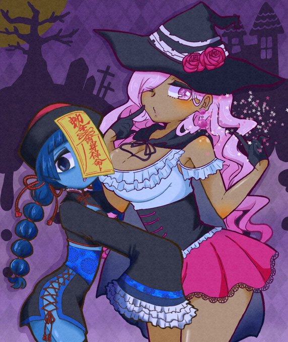 1 13 #ハロウィンイラスト展示会2022 #オリキャラハロウィンパレード キョンシーちゃんと魔女ちゃん🎃👻🍭 22/10/30 21:25