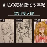 0 3 #私の絵柄変化5年紀 デジタル縛りならこんな感じ〜 記載外はうちの子 絵柄と言うより単純な画力な気もする 22/04/04 20:39