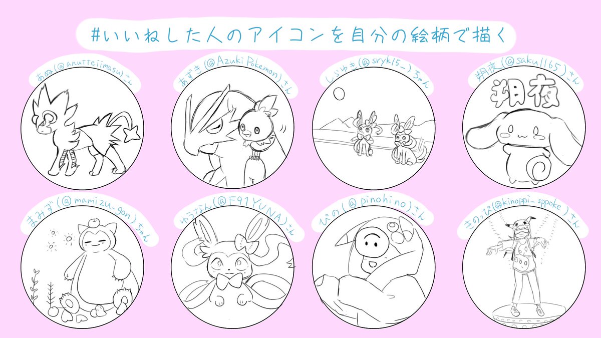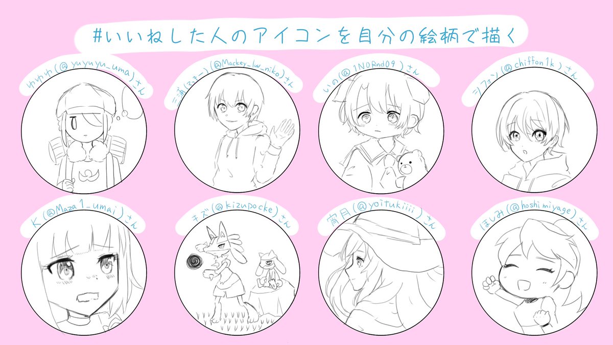 # いいねした人のアイコンを自分の絵柄で描く 線だけになっちゃってすみません!🙏💦 アイコン変わった人前のアイコンだったりします🥲🙏 いいねしてくださった方ありがとうございました💞